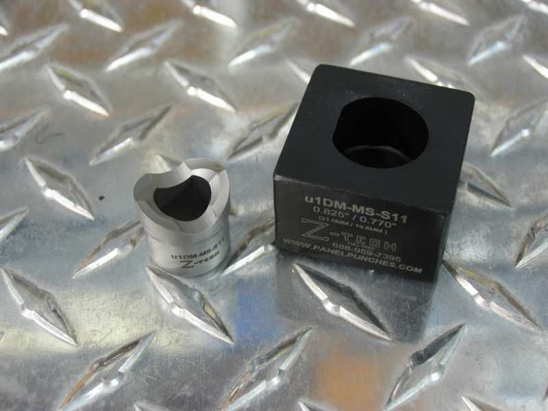 MS Shell 11 "D" Die Set ..0.825 Dia. 0.770 Over Flat..Mil Spec D38999 Shell "B"..Single M Pull Stud, S-7 Steel Punch..Requires uDM500-Puller..Recommended Maximum - 12 Gauge Stainless Steel