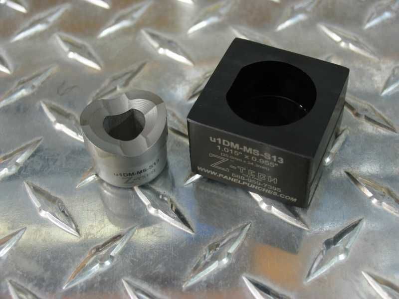 MS Shell 13 "D" Die Set .. 1.01" Dia. 0.955" Over Flat..Mil Spec D38999 Shell "C"..Single M Pull Stud, S-7 Steel Punch..Requires uDM500-Puller..Recommended Maximum - 12 Gauge Stainless Steel
