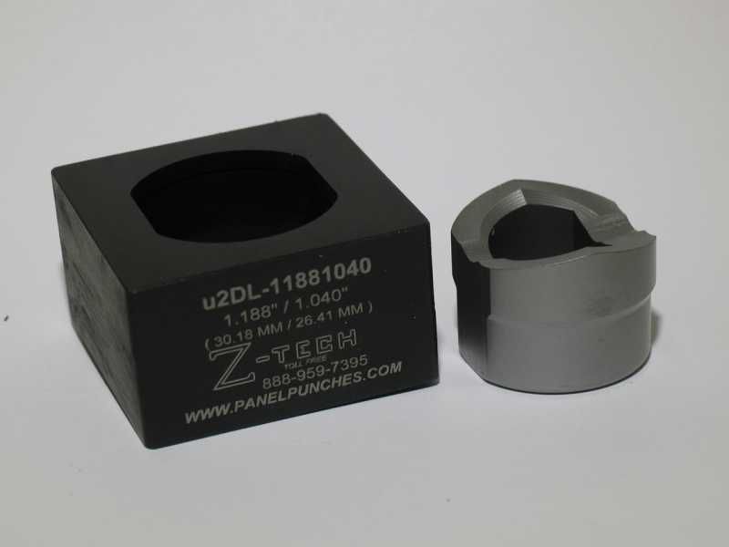 [u2DL-11881040] - Custom u2DL - Die Set, 1.188" dia by 1.040" over flats double "D" (30.18mm by 29.45mm). Heavy Duty S-7 punch rated for Stainless Steel up to 14 Gauge